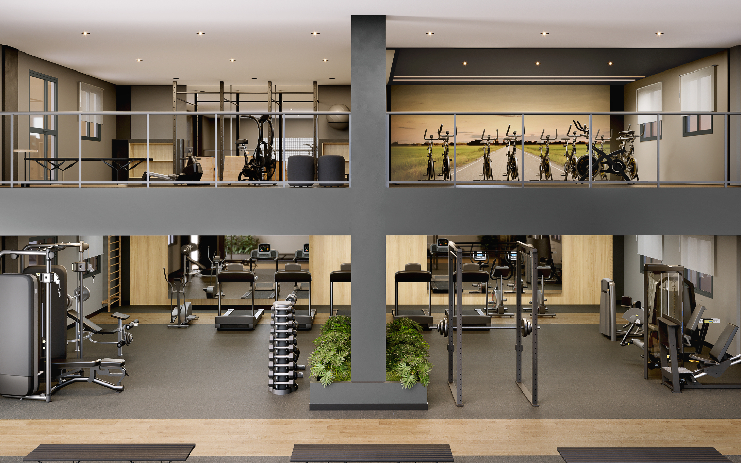 Os apartamentos são de 1 e 2 quartos, com opções de varanda e suíte, e plantas pensadas para aproveitar melhor os espaços. As unidades contam com integração inteligente entre sala e cozinha, pontos de ar-condicionado e ventilação cruzada, dependendo da tipologia escolhida.